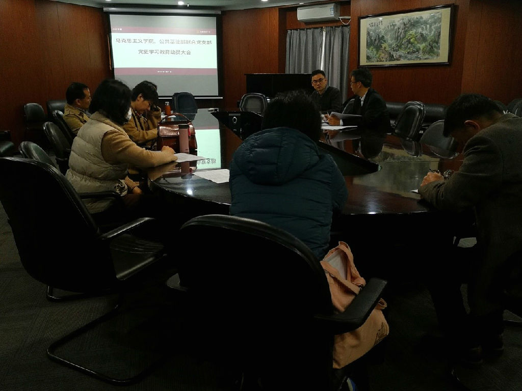 3月31日12:00,马克思主义学院、公共基础部联合党支部在教学大楼贵宾室召开党史学习教育动员大会。支部党员教师参加本次动员大会,会议由支部副书记兰一立主持。