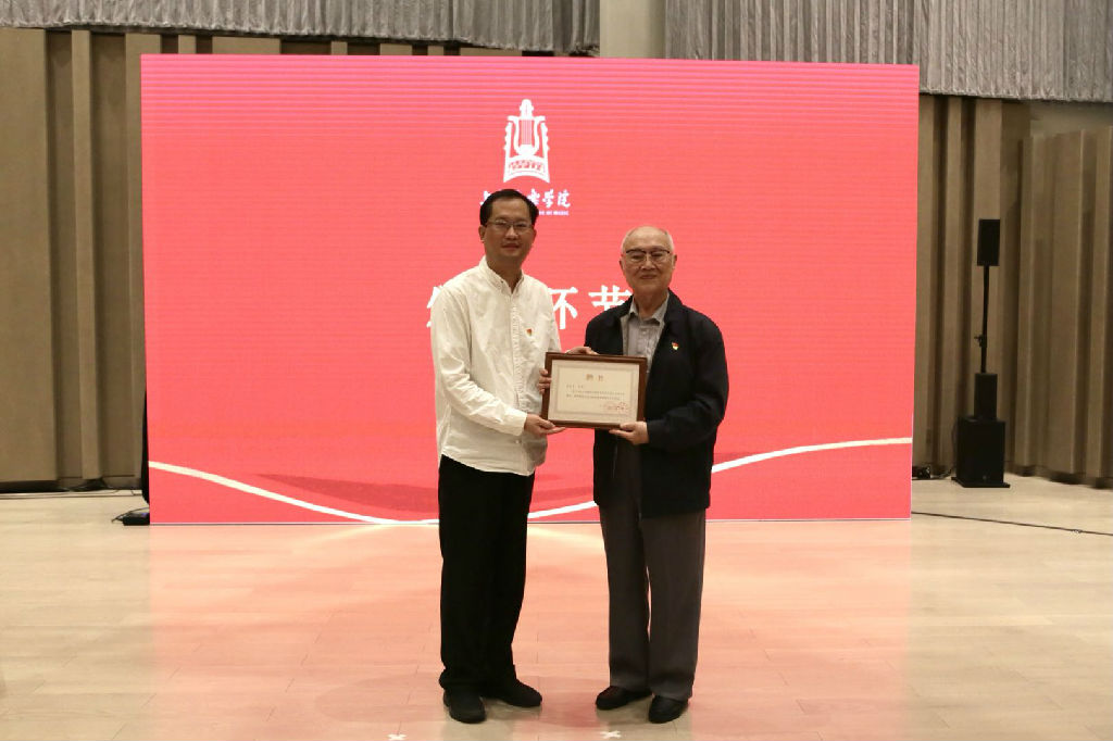 受因有重要任务不能出席会议的院党委书记徐旭和院长廖昌永委托,党委副书记曹荣瑞向吕其明先生颁发“萧友梅校长奖”证书和“taptap点点体育校史文化顾问”聘书。