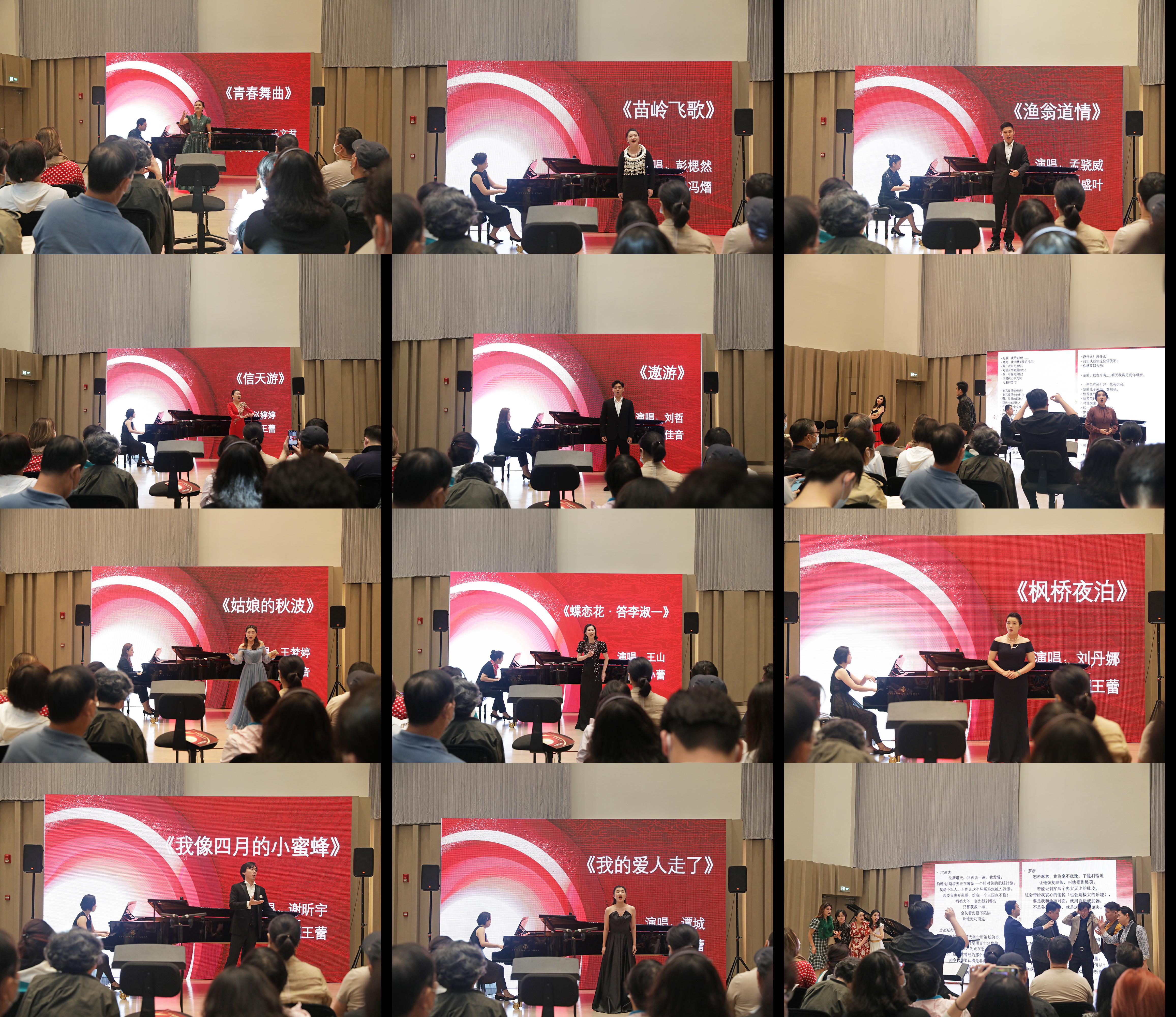 音乐会现场,12首中外名曲接连唱响。由欢快的新疆民歌《青春舞曲》开场,明快奔放的《苗岭飞歌》、韵味悠长的《渔翁道情》、苍茫恢宏的《信天游》紧随其后,让观众感受到了我国各地的传统风情。《遨游》《说说我的母亲》等多首优美动听的经典歌剧唱段,伴随着歌声琴声,带领听众们去向世界的各个角落,陶醉在音乐的魅力中。最后选自威尔第的歌剧《法斯塔夫》中的九重唱《爱丽丝,梅格,纳内塔》将整场音乐会的气氛推向高潮,音乐会也在热烈的掌声中落下帷幕。