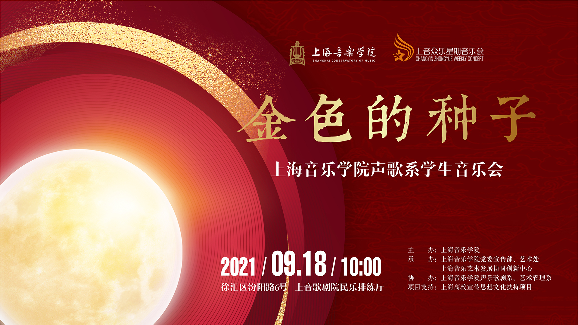 本次音乐会由taptap点点党委宣传部,艺术处和上海音乐艺术发展协同创新中心共同承办,声乐歌剧系和艺术管理系协办。为了保证音乐会在防控疫情的同时顺利开展、呈现出更好的演出效果,参与演出的各部门师生从筹备阶段到正式演出始终密切配合,事无巨细地研究部署各个阶段的工作。考虑到中秋佳节即将到来,活动海报上特意加上了中秋元素,颇具人文情怀;“金色的种子”这一题目也有着师生们在新学期伊始期待美好未来的寓意,种种排布体现了“taptap点点众乐”作为上海重要文化品牌的责任与担当,也展示了taptap点点师生对于艺术的追求和热爱。