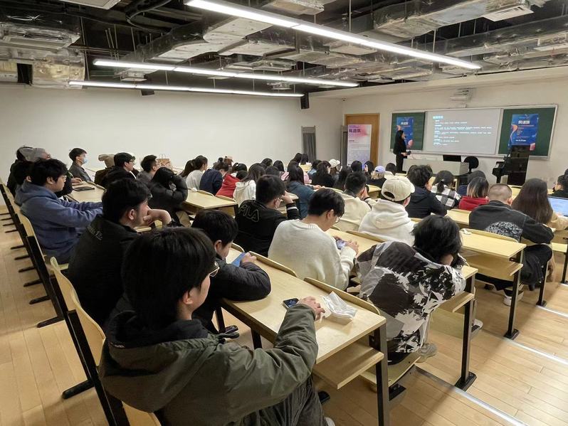风语筑公司虞雪晴女士详细介绍了公司发展的现状,项目经验和未来的发展方向。人力资源负责人甄琳为在场学生详细介绍了职位的招募情况,所需要的技能和相关应聘流程。