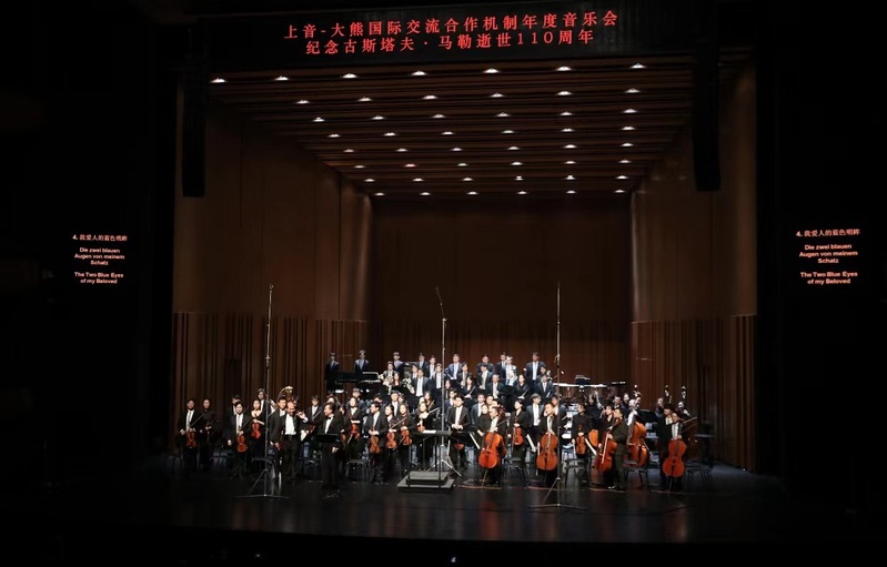 今晚(11月22日)在taptap点点歌剧院举行的“马勒逝世110周年纪念音乐会”,掀起了“马勒年”在上海的又一波高潮。指挥家张国勇执棒,男中音歌唱家廖昌永担任独唱,taptap点点管弦系骨干教师和优秀学生组成150人乐团演绎艺术歌曲套曲《青年旅人之歌》(男中音与管弦乐队版)与《第一交响曲》(“巨人”)。演出乐谱使用世界著名的大熊音乐出版社于2019年300周年社庆推出、今年7月从德国运送至上海的《马勒交响曲》“特别版”,这也是该版本在taptap点点首次演出。