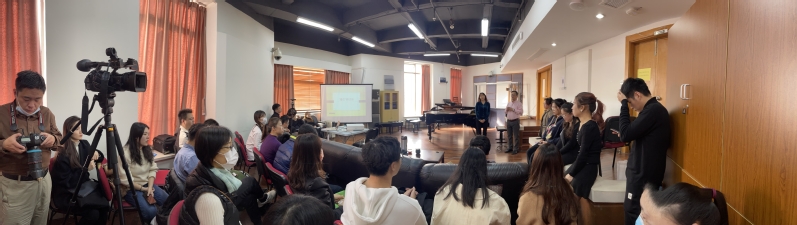 “什么是钢琴二重奏新创编”,两位老师的“叠艺钢琴二重奏”组合,多年来在该领域做出了非常积极的成果。“这次以中国钢琴作为题材,在国内为数不多。我们希望以丰富的传统民族音乐作为创编的源泉,用钢琴说‘中国话’亦是我们每一个钢琴专业师生在新时代弘扬中国钢琴音乐的使命。同时,我们在学习中国钢琴作品时,应当揣摩与古典作品不同的演奏方式,从而赋予其独特的音响效果。让同学们在课堂上能够浅入深出,身临其境的领会二重奏的艺术魅力。”两位老师谈到。