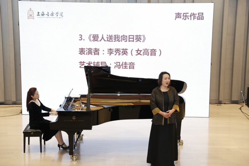 声歌系的李秀英教授与艺术辅导冯佳音老师共同带来了《爱人送我向日葵》《延安夜月》。