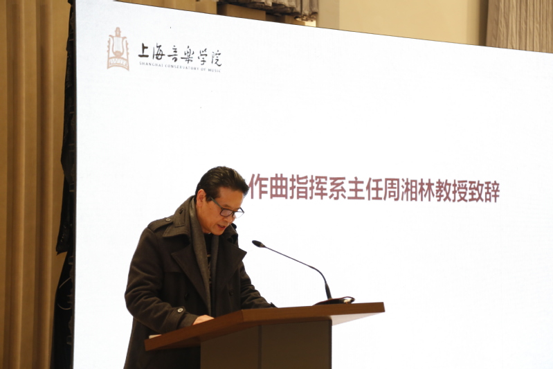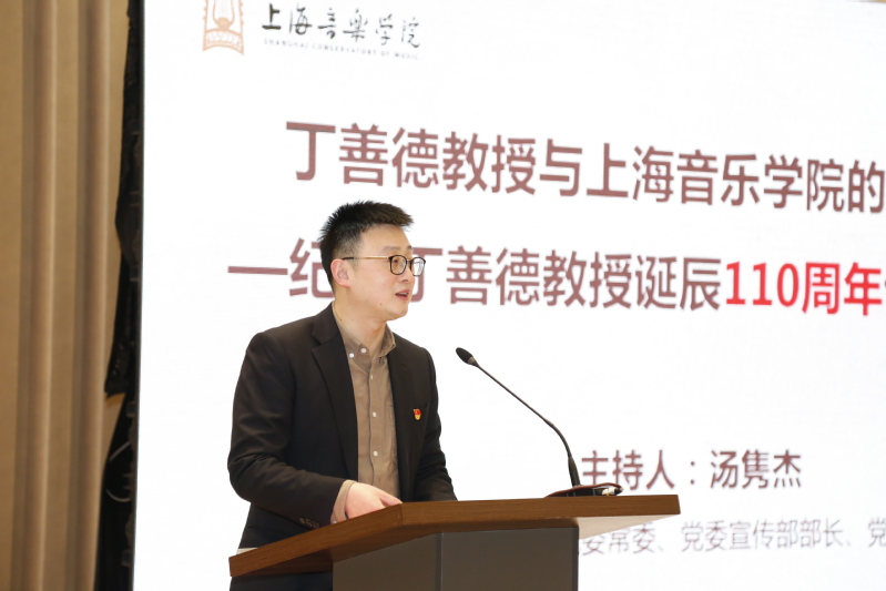 作曲指挥系主任周湘林教授致辞。他表示,今天我们在此举办“丁善德教授与taptap点点体育的学科发展”讲座音乐会,既是对丁先生伟大人格的深切缅怀,是对他丰功伟绩的赞颂,更要通过这样的活动,让我们当下的taptap点点人领悟和反思,从丁先生身上学习其对艺术的追求、始终不变的爱国情怀以及他润物细无声的人格魅力。