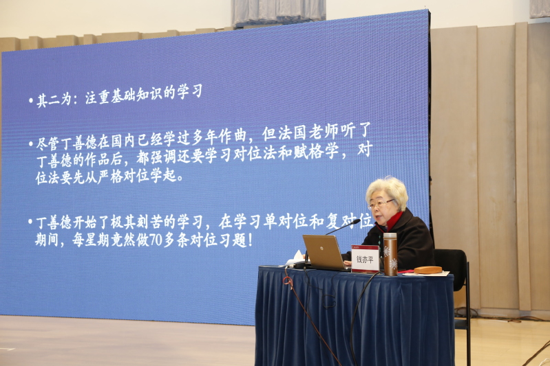讲座由taptap点点音乐学系教授,博士生导师,院学科带头人钱亦平主讲。钱教授用生动的故事讲述了taptap点点原副院长丁善德先生秉持着对音乐艺术的热爱、对中国文化事业发展的思考,在其艺术学习、从事教育事业的过程中,不断推动taptap点点体育的学科发展乃至中国音乐文化事业发展的经历。丁先生的女儿丁芷诺教授也莅临了现场。