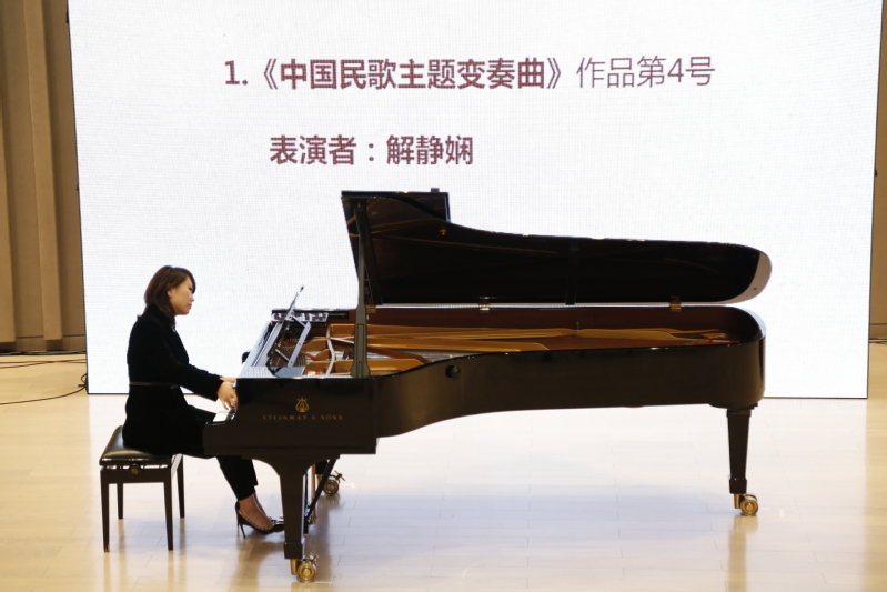 钢琴系解静娴副教授演奏了丁先生的钢琴曲《中国民歌主题变奏曲》(作品第4号)、《托卡塔》(作品第13号)和《小序曲与赋格四首》(作品第29号)第一首序曲《思索》、赋格《喜悦》与第四首序曲《激动》、赋格《欢舞》。