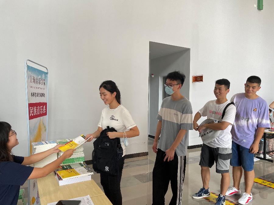 早上八点不到,民乐系的热心学长学姐们,已经把“萌新们”需要的书籍悉数搬到了新生报到处。为确保每位新生都不会漏拿书本,学长学姐们已经在报道处完成了书籍的分类,等待着”萌新们“的到来。每位前来报道的新生,都充满了对大学生活的期盼;早已守在报道点多时的民乐系学长学姐,热情似火地为“萌新们”办理报道手续,脸上同样洋溢着热情的笑容,欢迎着新朋友。