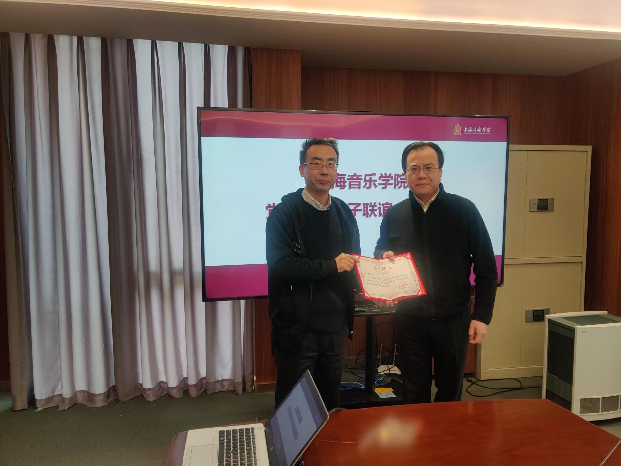 唐哲和邱曙苇同志因加入民主党派担任重要工作光荣离会,吴学霆和江晨为他们颁发了荣誉证书。