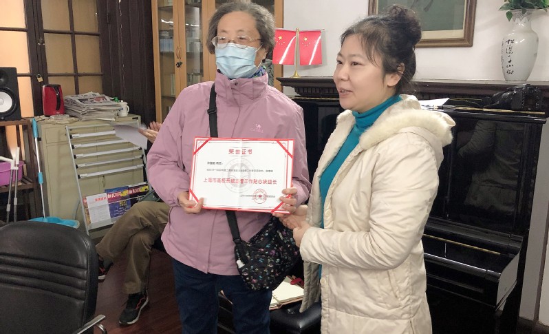 会议一开始,由易慧为优秀块组联络员许黎韵老师颁发了荣誉证书,祝贺她获得2018-2020年度“上海市高校系统退休工作贴心块组长”称号。