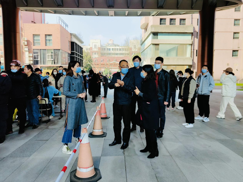 学生返校报到当天,党委副书记、副院长徐卫带队赴零陵路校区,现场指导学生返校报到及核酸检测工作。