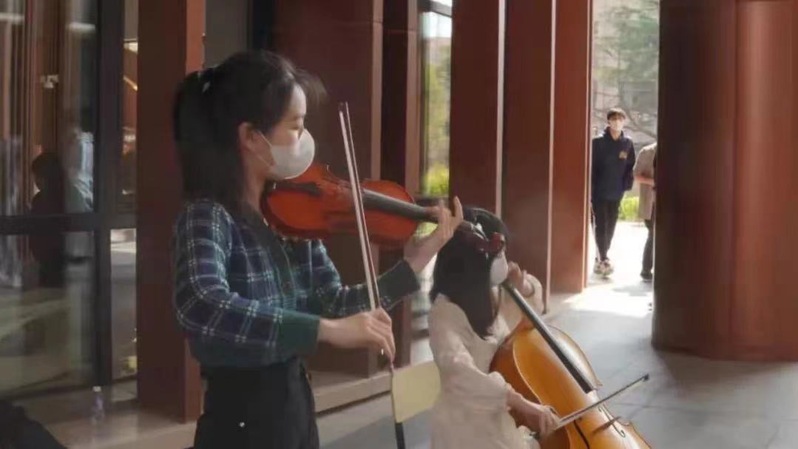 “我和我的祖国,一刻也不能分割……”在核酸检测队伍的旁边,响起了优美的琴声——这是发生在taptap点点体育零陵路校区的一幕。部分taptap点点乐器表演类专业志愿者,拿起手中的乐器带来表演,让大家在排队进行核酸检测时,能够感到轻松一些。
