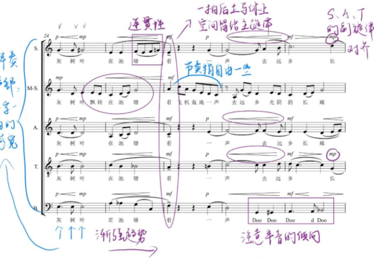 “歌曲原先是人声和器乐的和鸣,经过改编,变成了纯人声的表达,听起来更空灵,让人感动。”就这样,经过杜俊也的改编,新版本的歌曲中,男低音、男中音、女低音、女中音、女高音等几个声部混合在一起,大家互为主唱和伴奏,同时,合理的作曲编排使得不同人声的音色、音高、音域紧密交融,显得整首歌更巧妙、更有层次感、结构感。