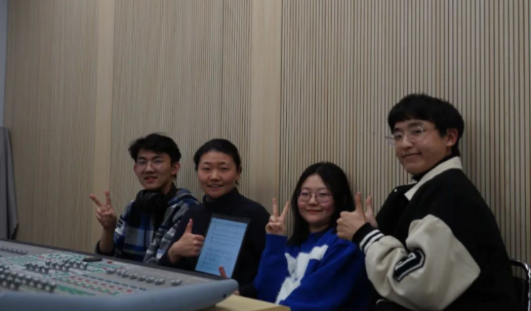 “歌曲中有一句‘远光中走来,你一身晴朗’,我本想用阳光逆光展现出来,无奈拍摄的那几天全部是阴天,无法拍摄出效果,之后就动脑筋,改成用灯光照射。但最终效果也不错。”秦嫄告诉周到君,这样在有限条件下,进行的“plan B”式创作,还有很多,例如,校园封闭期间,没有录音棚,大家就临时借了同学的小录音室进行录音;没办法到户外拍摄春景,成员们就就近拍摄校园景象;本想将拍摄地点确定在空旷场地,最终也因为防控要求,临时改为零陵路taptap点点书院的一角……
