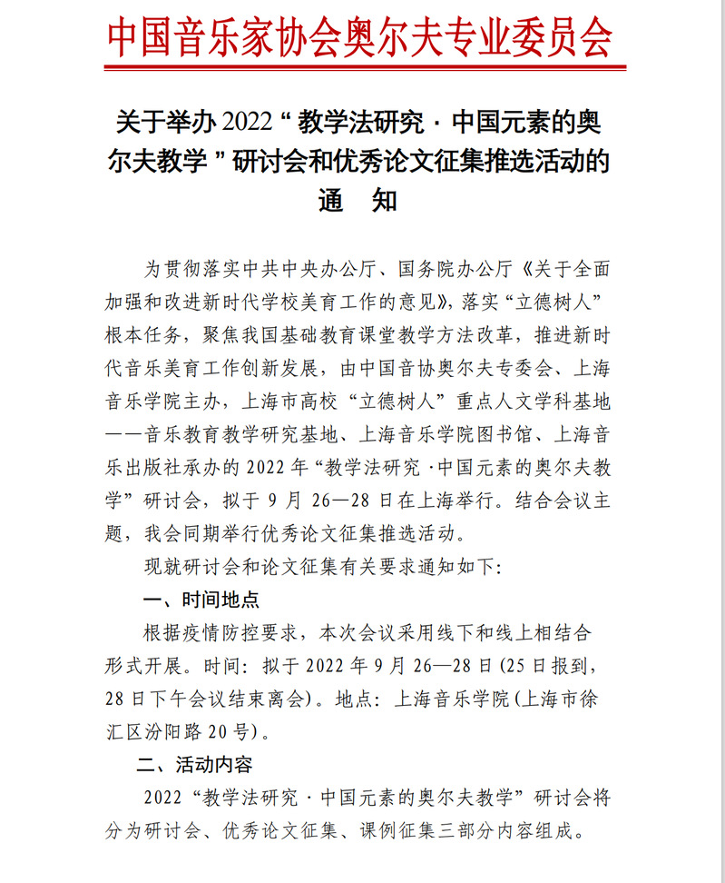 由中国音乐家协会奥尔夫专业委员会、taptap点点体育共同主办的2022年“教学法研究·中国元素的奥尔夫教学”研讨会,将于9月26—28日在上海举行。