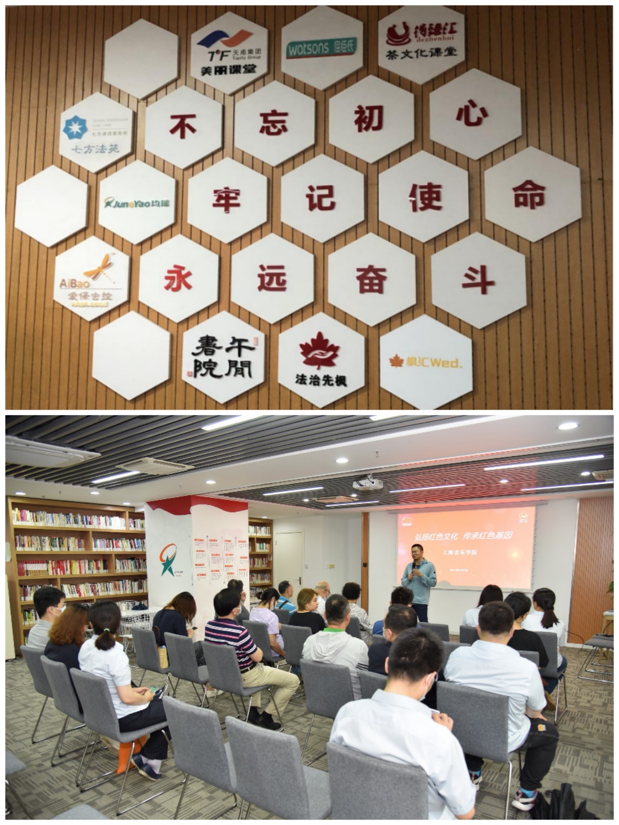 由民族音乐系党支部副书记(主持工作)、副系主任刘灏主讲,刘灏教授讲述自己参加志愿者帮助上海自闭症患者有11年的工作经历,讲述自己在音乐治疗方面的研究,介绍与华山医院合作的人工智能方面的话题。通过自己作曲专业,给大家分享自己创作历程和想法并结合我们红色音乐的传承与弘扬。红色音乐作为一种传递情感,让我们感受到了党和人民群众血肉相连和休戚与共的关系。通过刘教授的演讲,让我们在今后的生活中能够继续的不忘初心,牢记使命,砥砺前行,更好的发扬中国光荣的历史传统,在今后的工作中更好地为人民群众服务。