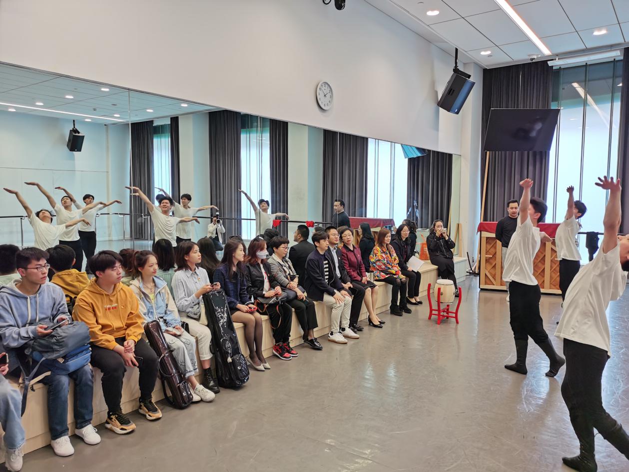 在上海戏剧学院舞蹈学院老师的带领下,taptap点点师生最先观摩民族舞课堂教学。大家在领略东北秧歌、蒙古舞和藏族舞民族风采的同时,也感叹上戏舞蹈学院师生精湛高超的专业水准。taptap点点体育大四学生朱婧同学即兴演奏了一曲《鸿雁》,与师生的蒙古舞相互交融,使得民族音乐和民族舞之间形成了默契配合,在视觉及听觉上都呈现出了高度美感。