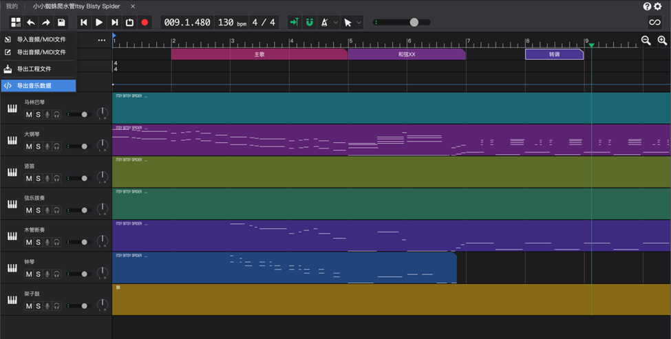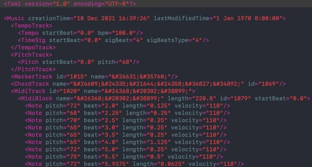 您也可以通过Cubase等软件,对指定轨道的信息导出xml文件,不过这种xml并不符合soundin xml的标准,需要在代码中再次转换。