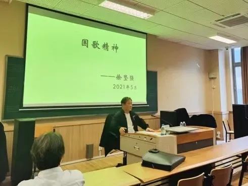 2021年5月19日下午,作曲指挥系本科一至四年级学生在汾阳路校区北418教室聆听了徐坚强教授关于《国歌精神》的主题讲座。