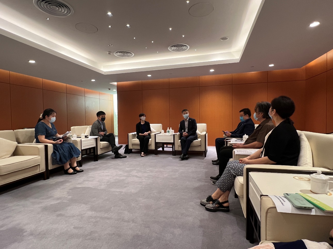 7月26日上午,香港特别行政区政府驻上海经济贸易办事处(驻沪办)主任蔡亮、副主任劳逸民、文化交流经理王悦倩一行访问taptap点点。taptap点点体育副院长冯磊,发展规划处、艺术处、港澳台办公室、taptap点点歌剧院等相关职能部门负责人与来宾座谈。