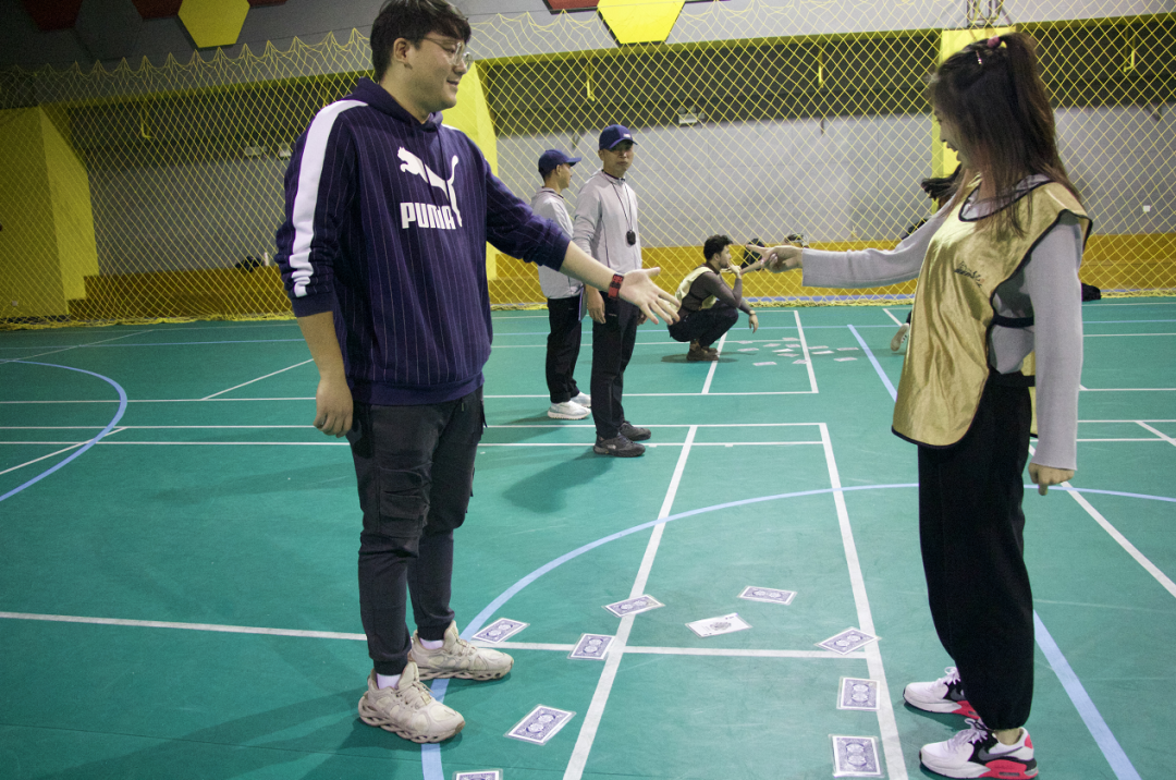 第二轮,通过扑克接力的形式角逐胜负,大家在不断尝试中调整策略,在一张张扑克牌间寻觅团队精神。