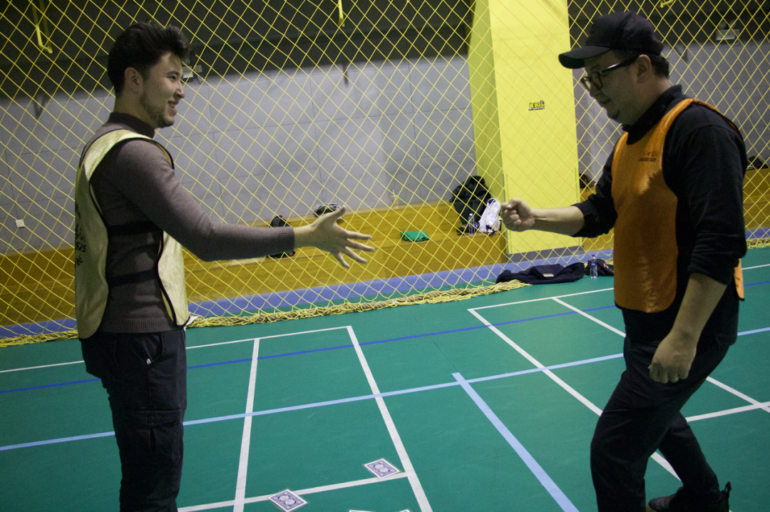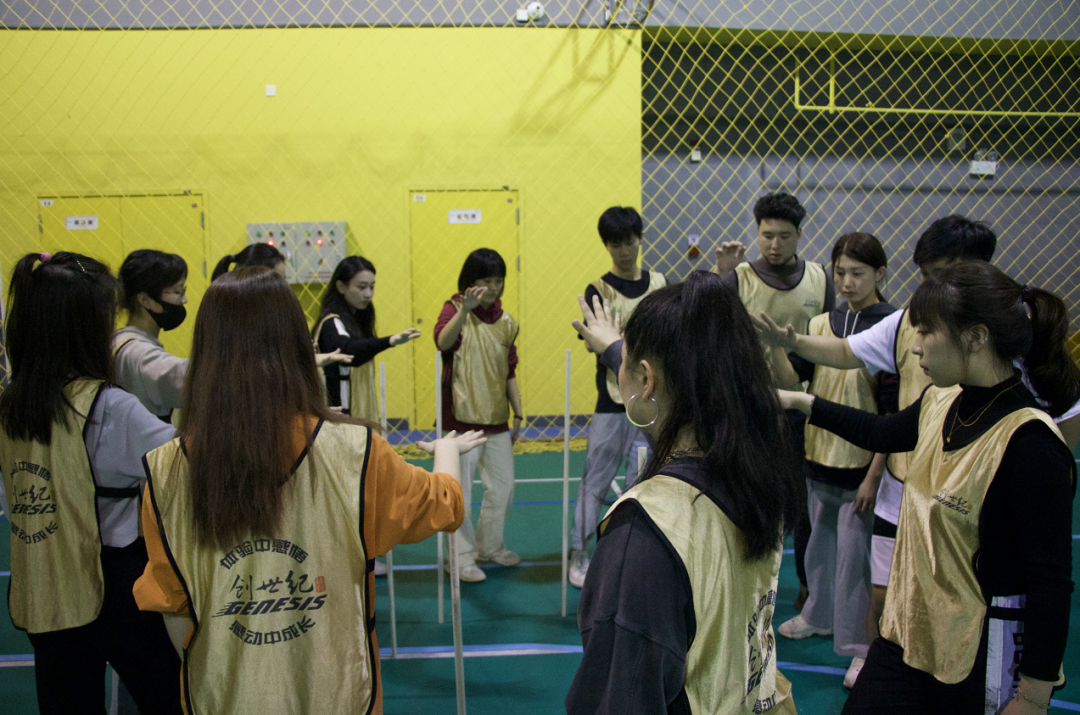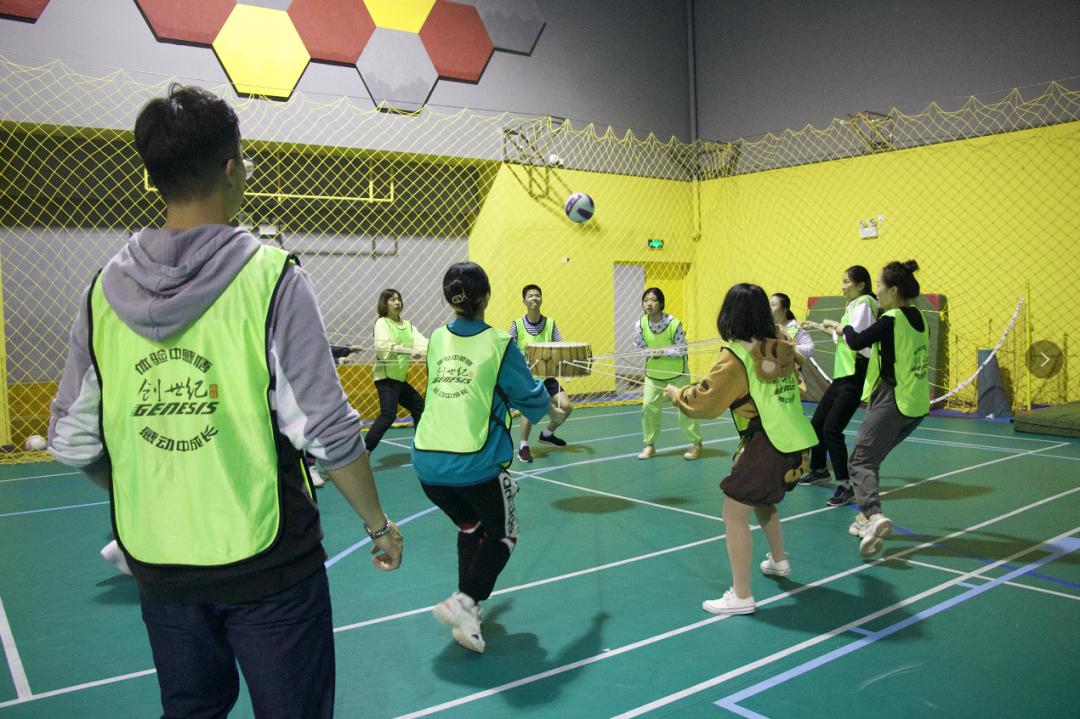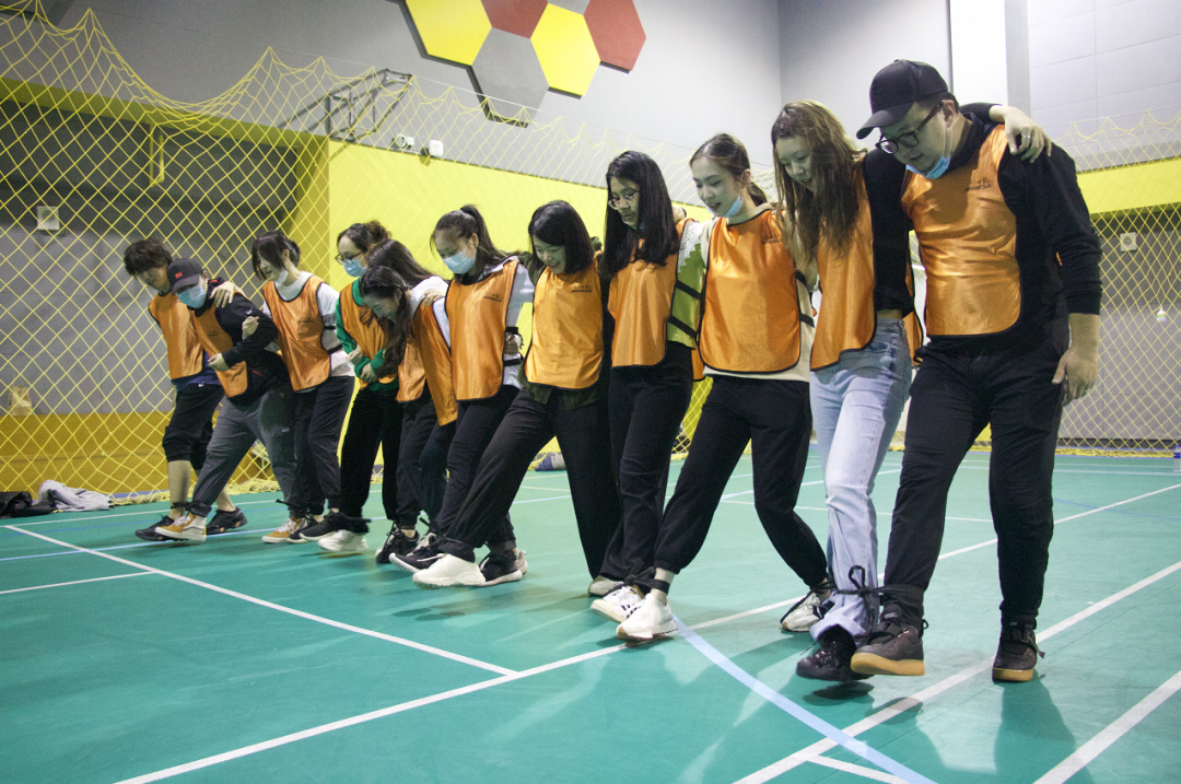 在教练的带领下学员们共分为绿、金、橙三组,通过两轮积分赛开展素质拓展。