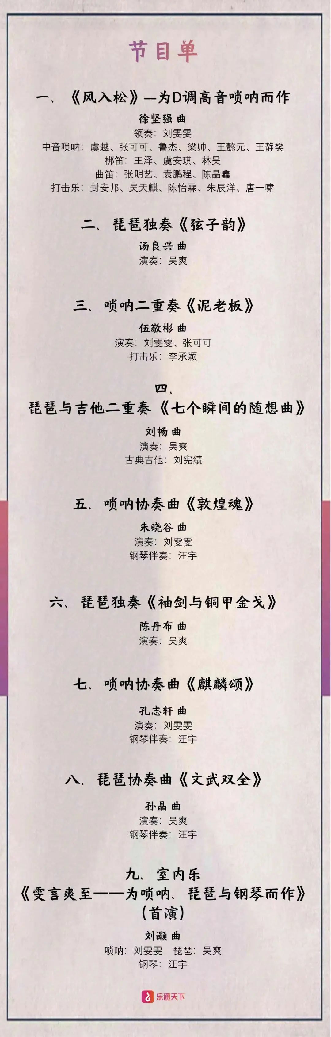 中音唢呐:虞越、张可可、鲁杰、梁帅、王懿元、王静樊