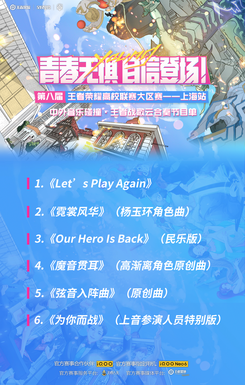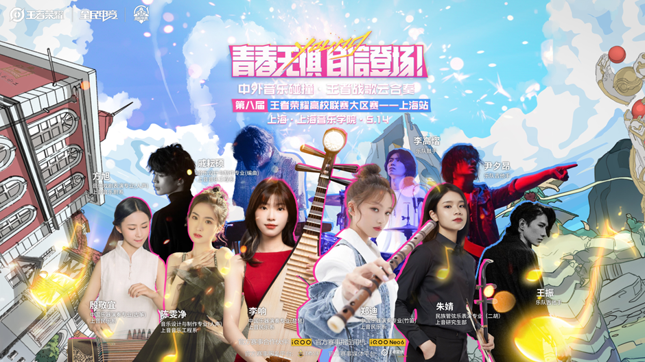全民电竞,剑指荣光,指尖梦想,荣耀起航。第八届王者荣耀高校联赛大区上海站比赛将于5月14日11:30线上举办。在选手们为我们带来精彩赛事的同时,taptap点点体育的学生们也联袂为观众们打造了一场“中西合璧”的视听盛宴。不仅为大区赛的赛事增添了活力,更让观众们感受到了国乐与电声的精彩融合,共建出多样体验的王者荣耀世界。