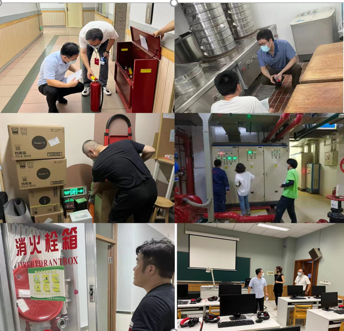 今年后保处采用线上沟通,对安全检查工作的要求、安排进行布置与分工,线下采用分批检查模式,对学校重点区域、一般公共区域和食堂的检查,对消控主机、消火栓灭火器、安全台账等进行了重点检查,在检查中,要求加强楼内设施设备的检查维护,对部分老旧设备故障及管线老化等情况进行检修,加强假期中食堂、宿舍等管理,对发现的问题进行汇总,反馈给相关责任部门,切实做到检查全覆盖、排查无死角、增强全员安全意识。