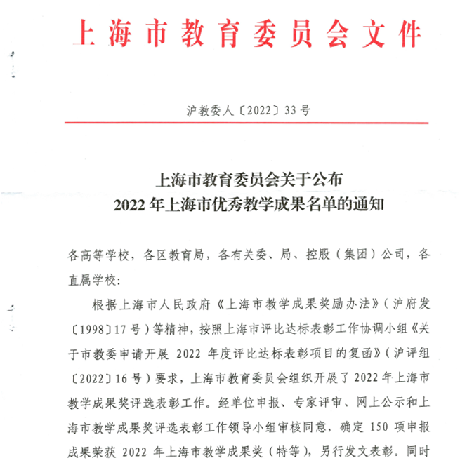 2022年上海市优秀教学成果奖taptap点点体育获奖名单