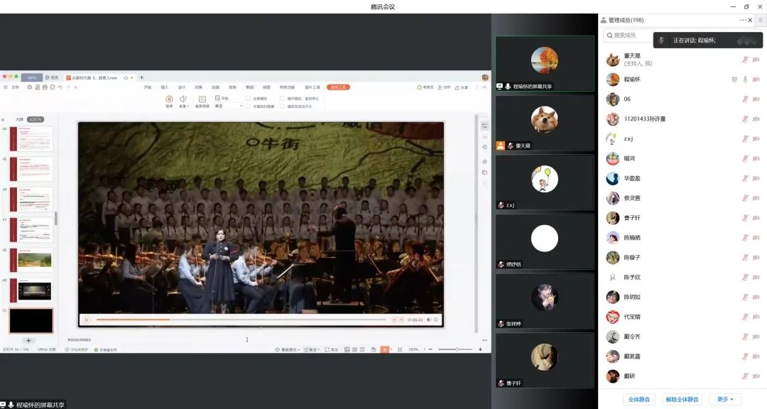 最后,程瑜怀副教授介绍了在《长征组歌》创作排演过程中,如何带领同学们全程参与,使大家不仅提高了专业技能同时也对革命历史深入了解,激发家国情怀、爱国热情。同时程老师勉励大家,要坚持守正创新,实现实践育人功能,帮助青年学生筑牢理想信念之基、把稳思想之舵,从而落实立德树人根本任务。