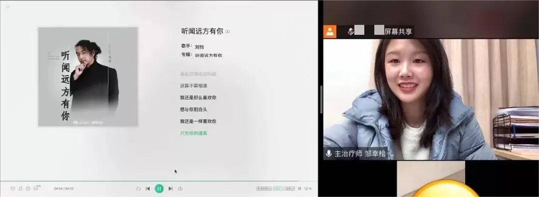 今年上半年受疫情影响,一些需要持续治疗的病人中,癌症患者面临着新冠病毒和自身疾病的双重“威胁”,恐慌和焦急可想而知。为帮助他们释放压力、建立信心,康疗团队以“我最喜欢的歌”为主题,开启“一对一”音乐线上疗愈服务。来访者在预约时选择一首自己喜欢的歌,治疗过程中与音乐康疗师一起聆听,这一过程中康疗师帮助来访者发现自身的积极资源,开展心理建设。