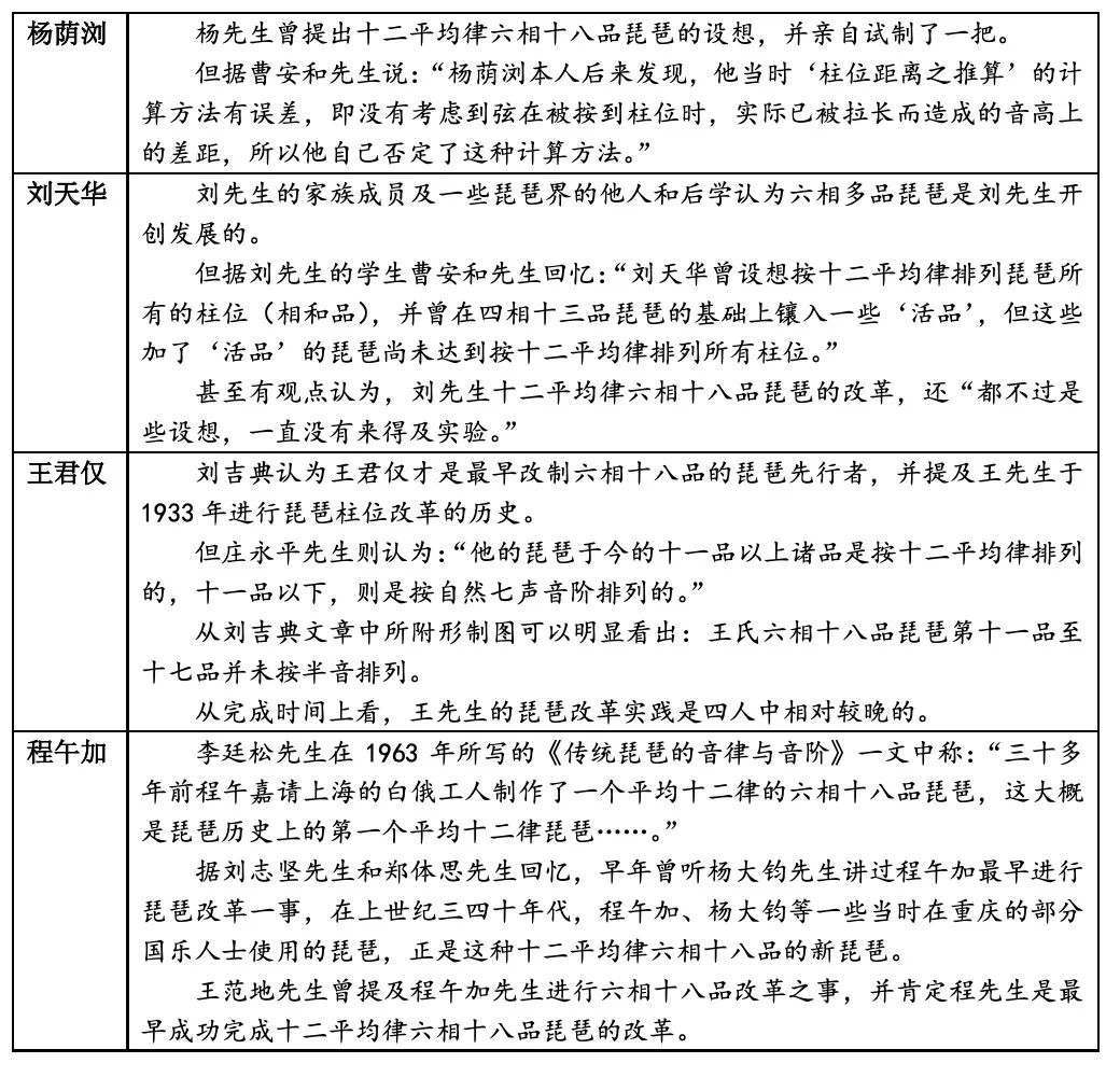 其一,杨荫浏先生是目前所知近代较早试制十二平均律六相十八品琵琶的改革家,但计算有误并不成功,其自己也撰文说明此事。