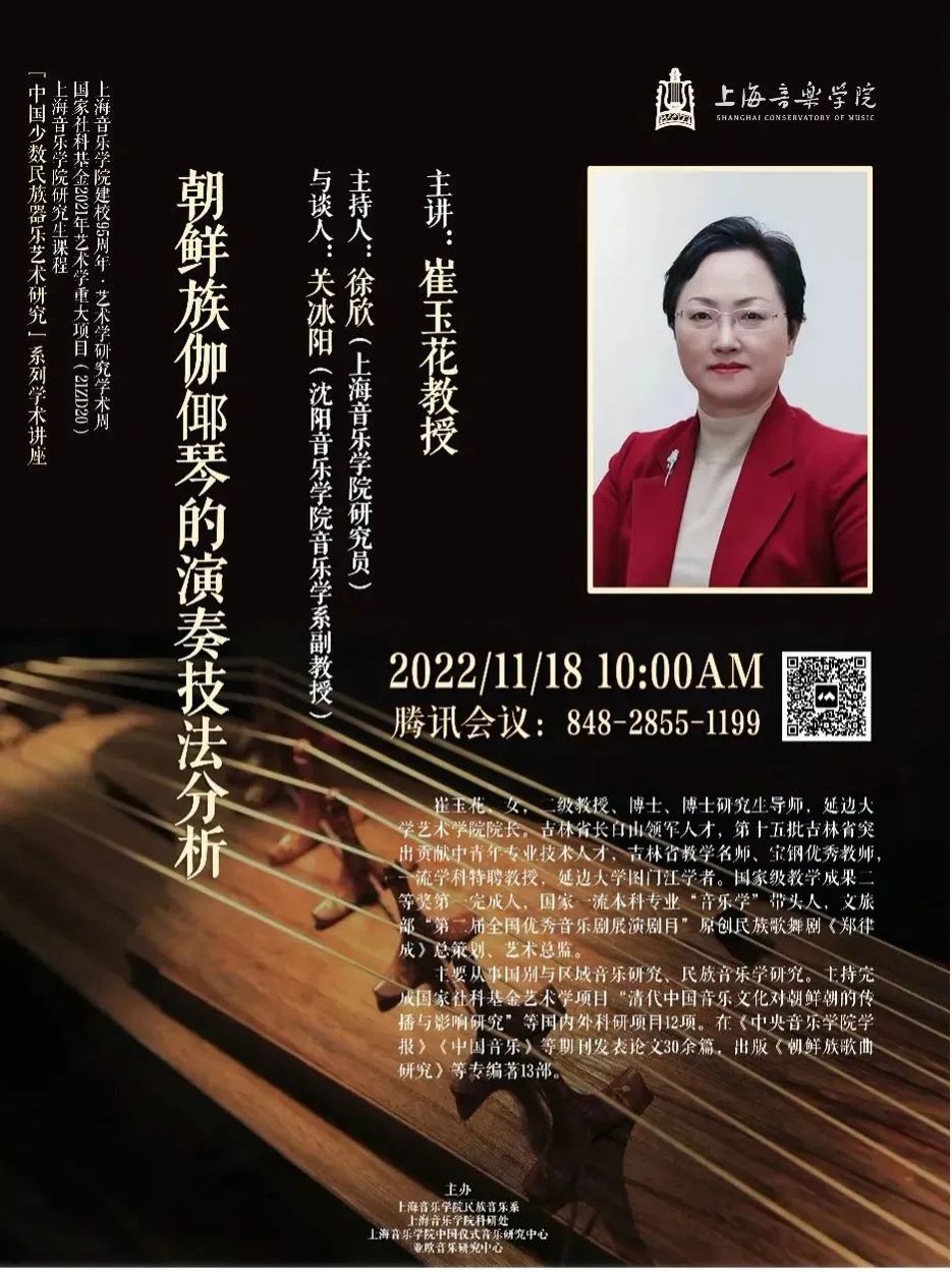 讲座围绕朝鲜族传统伽倻琴和改良伽倻琴的形制、发展过程、演奏技法特点及其变迁进行理论梳理与演奏示范,呈现出伽倻琴这件朝鲜民族代表性的齐特类乐器在近当代中国的发展与变迁,以及在此历史进程中所体现的文化内涵与学术意义。