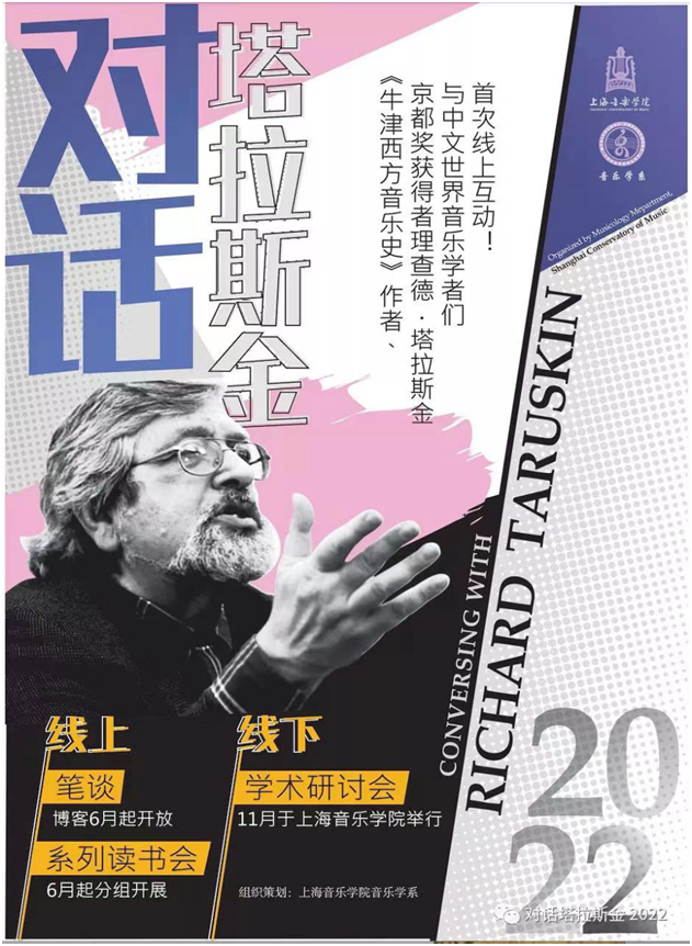 2022年7月,由上海音乐学院音乐学系西方音乐史、作品分析以及音乐美学三个教研室的几位老师共同发起,由梁晴老师组织,“对话塔拉斯金2022系列读书会”正式拉开帷幕。读书会以塔拉斯金在西方音乐史及史学方法、音乐表演、作品分析以及音乐批评等领域的著述为核心进行研读,来自上音、央音、北大、美国宾大、英国约克、德国法兰克福等国内外超过二十所高校、机构的七十余名学者参与了对谈。活动也邀请到北大艺术学院院长彭峰以及美国知名学者苏珊·麦克拉蕊举行讲座。读书会在视频网站平台上的播放量目前已经接近万次。活动最终预计在年底将完成22场读书会。