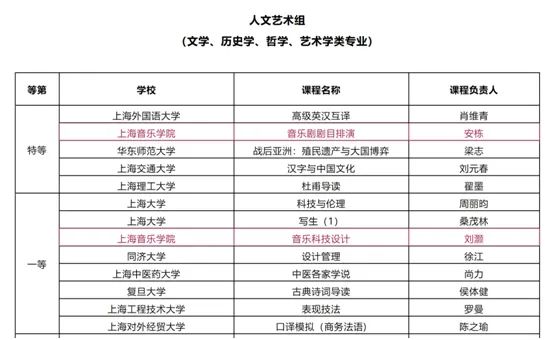 | 普通本科课程 | 《音乐科技设计》 | 刘灏 | 实践类课程 |