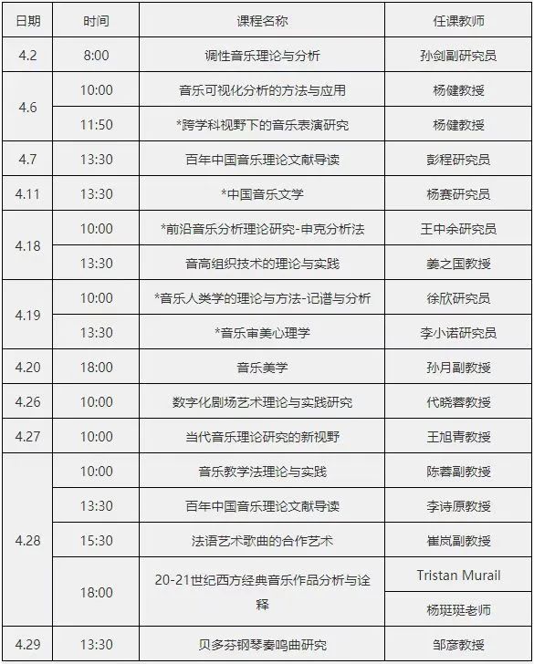 4月部分开放课程列表