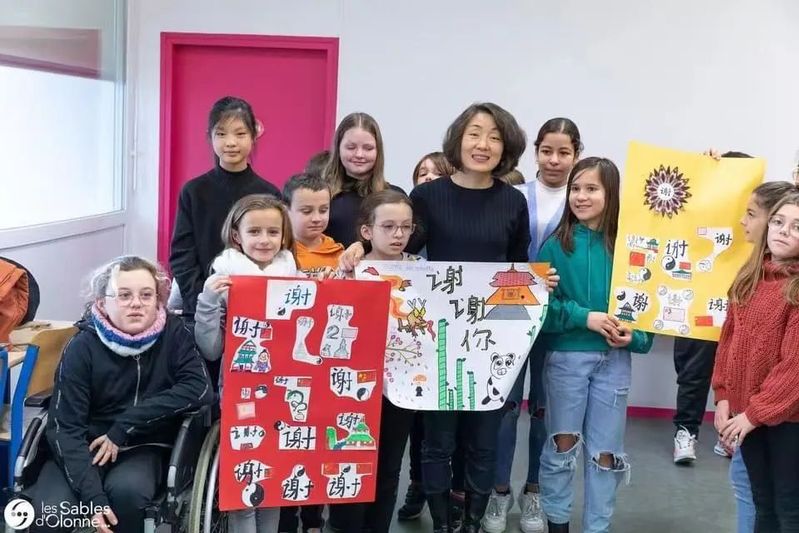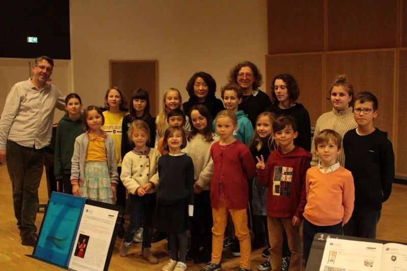 随后邱曙苇应邀访问了莱萨布勒多洛讷的小学和音乐学院的童声合唱团,与合唱团的孩子们愉快地交流畅谈,并且教唱中国歌曲《南泥湾》和《茉莉花》,为18日的大型音乐晚会做准备。