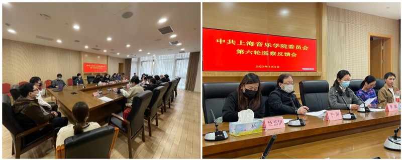 近日,校党委第六轮巡察工作组分别向资产公司党总支、音教系党总支、音工系党支部三个被巡察党组织反馈了巡察情况。校巡察工作领导小组成员、党委巡察办主任郭恺,校纪委专职副书记汪国安,党委组织部副部长孙宁宁,党委巡察办、巡察组全体成员,被巡察单位党政领导班子、全体教职工、学生代表等参加了反馈会。