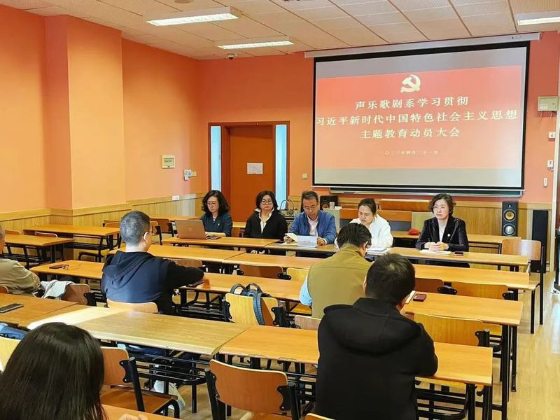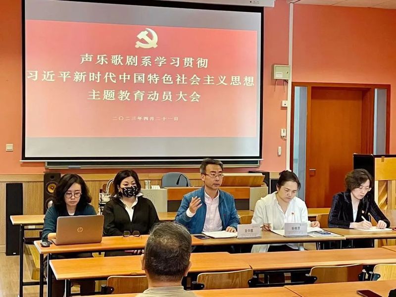 2023年4月21日下午,声乐歌剧系在汾阳路校区北602教室召开学习贯彻习近平新时代中国特色社会主义思想主题教育动员大会。声歌系党总支书记陈晓翌同志主持并作动员讲话,taptap点点体育党委常委、第一巡回指导组组长吴学霆同志出席会议并作讲话。