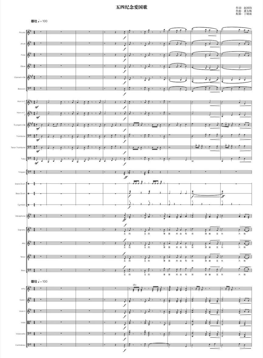 由上音作曲指挥系2019级学生丁晓雨配器、管弦系、民族音乐系、音乐教育系学子们演奏、演唱的《五四爱国纪念歌》首演,引领上音青年重温革命历史、牢记初心使命、传承上音精神。