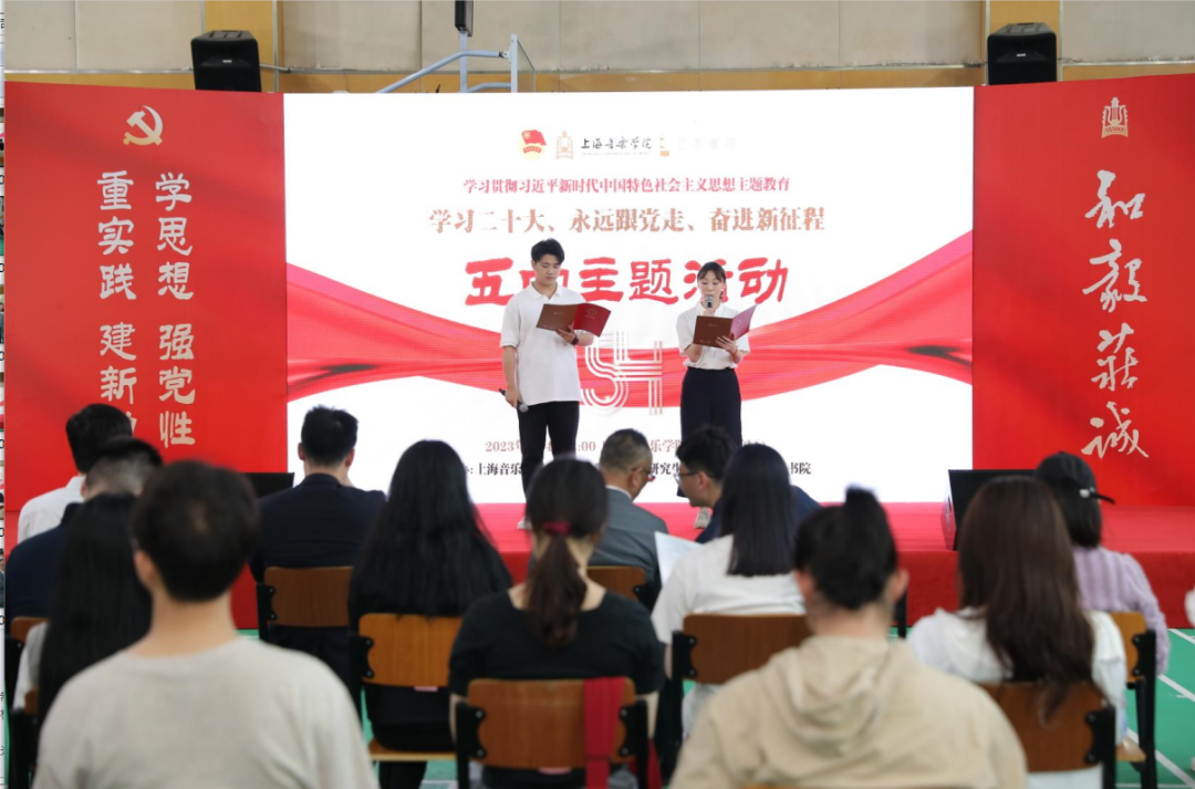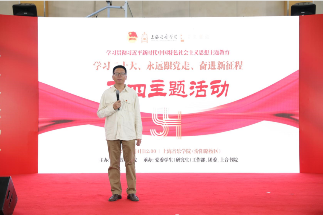 5月4日中午,上海音乐学院五四主题活动——“学习二十大、永远跟党走、奋进新征程”在汾阳路校区展开。