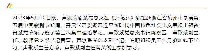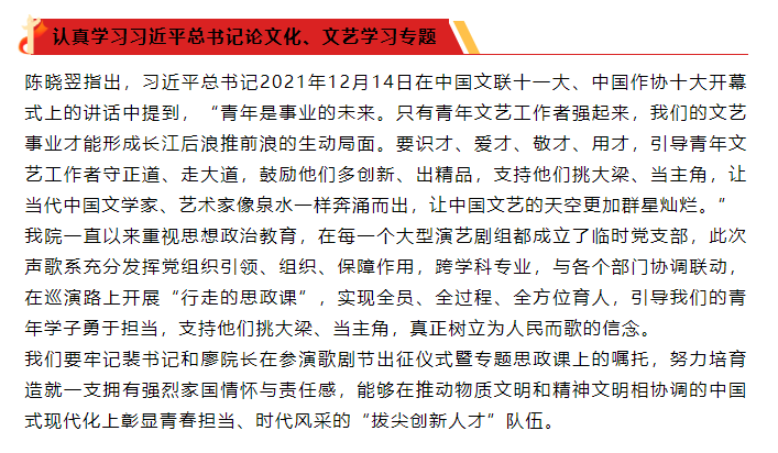 着力造就拔尖创新人才|声乐歌剧系党总支开展主题教育第三次集中理论学习