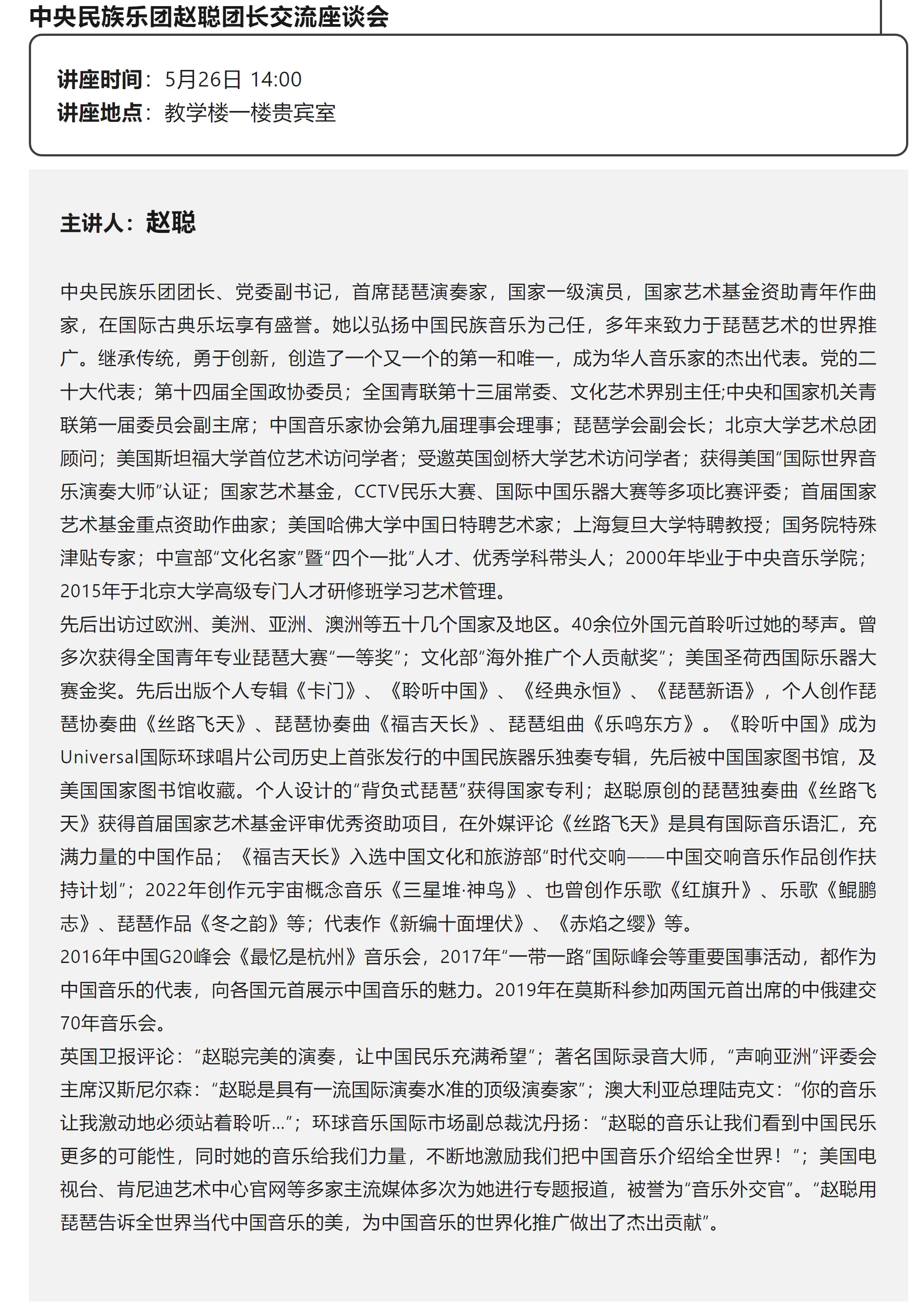 活动预告|中央民族乐团赵聪团长交流座谈会