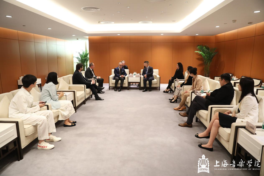 5月25日上午,上海音乐学院副院长冯磊在上音歌剧院会见意大利驻沪总领馆文化处处长达仁利(FrancescoD’Arelli),以及首站访问上音的罗西尼歌剧节主席、佩萨罗市副市长丹尼尔·维米尼(DanieleVimini)和罗西尼歌剧节总经理克里斯汀·德·琪娅拉(CristianDallaChiara)一行。