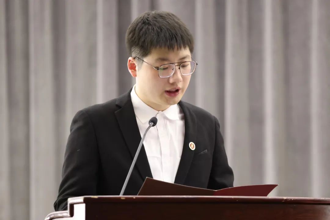 姚添琦代表第二十四届学生会作题为“以艺聚力、自信自强、守正创新”的工作报告。报告回顾和总结了自上海音乐学院第二十四届学生会成立以来,学生会在院党委和团市委领导下,在市学联和院团委的指导下,以引领同学成长和服务同学为目标,以代表和维护广大同学的根本利益为核心,以全心全意为同学服务为宗旨,积极响应时代号召,围绕学校中心工作,不断开拓工作新方法,志存高远,追求卓越,为学生的成长成才和学校的发展建设做出了积极的贡献。并且提出了思考和展望,学生会应团结带领广大同学按照党的要求健康成长、全面发展。要始终牢记党的要求,切实履行组织职能,全面践行服务宗旨,团结带领广大同学奋发学习、成长成才,充分展现青春心向党、建功新时代的奋进姿态。