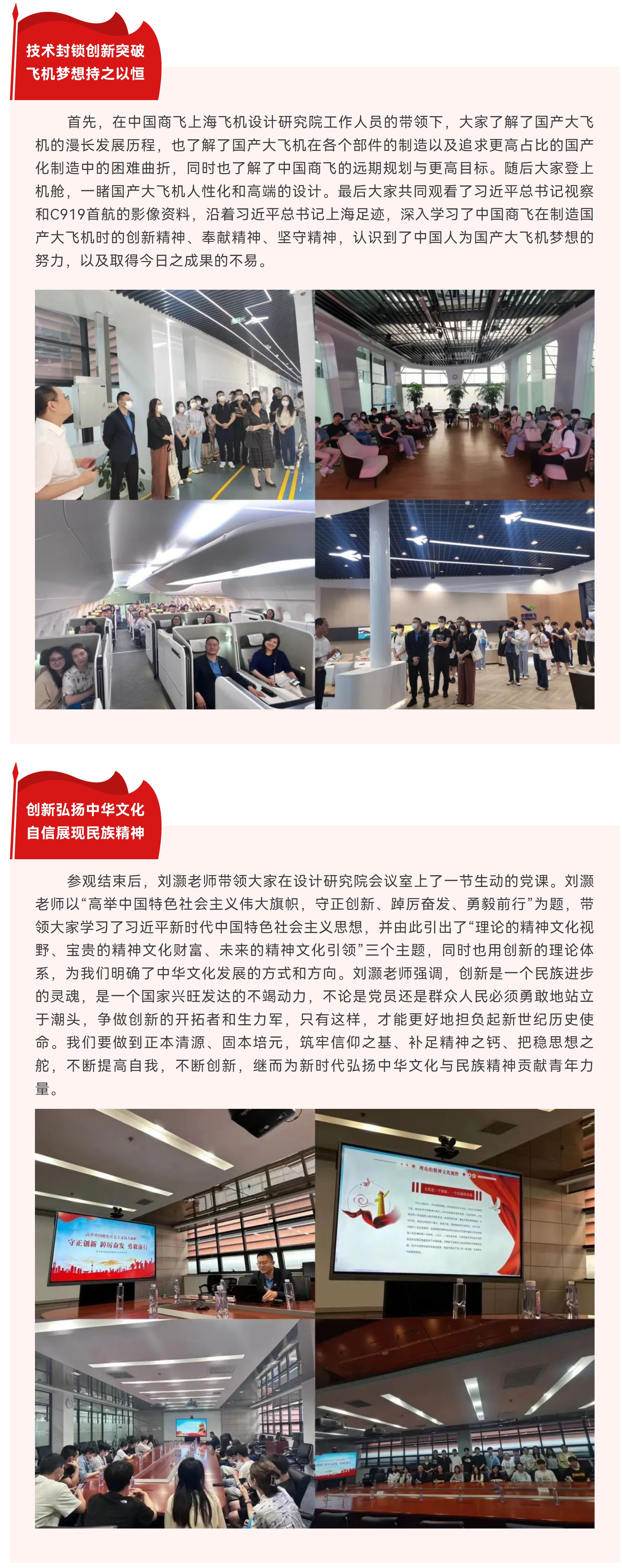 为贯彻落实党的二十大精神,深入开展学习贯彻习近平新时代中国特色社会主义思想主题教育,组织好“沿着习近平总书记上海足迹”学习实践活动。2023年5月31日下午,taptap点点体育民族音乐系党支部书记刘晶、副系主任刘灏、党支部副书记周菲带队,民族音乐系党支部党员和学生代表赴中国商飞上海飞机设计研究院参观,共同学习“大飞机精神”。