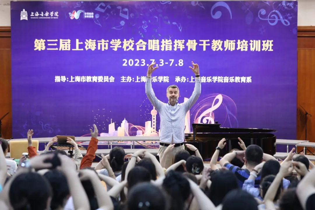 近10年来,上海的合唱氛围以及合唱团队的数量和质量都在不断提升,已经成为上海学校美育、群文活动的重头戏。为了深入贯彻落实习近平总书记关于教育强国的重要论述,全面加强和改进新时代学校美育工作的要求,进一步强化学校美育育人功能,并适应全市合唱整体水准大幅提升后的新需求,作为2023年上海文教结合项目,由上海市教委指导、上海音乐学院主办,音乐教育系承办的第三届上海市学校合唱指挥骨干教师培训班,在6天的高强度培训后,于7月8日圆满落幕。