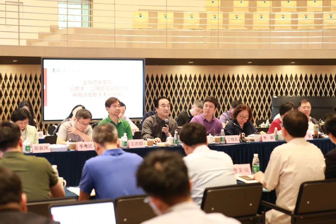 与会领导、专家围绕上音“高地大”二期建设前期工作和整体报告内容进行互动交流。