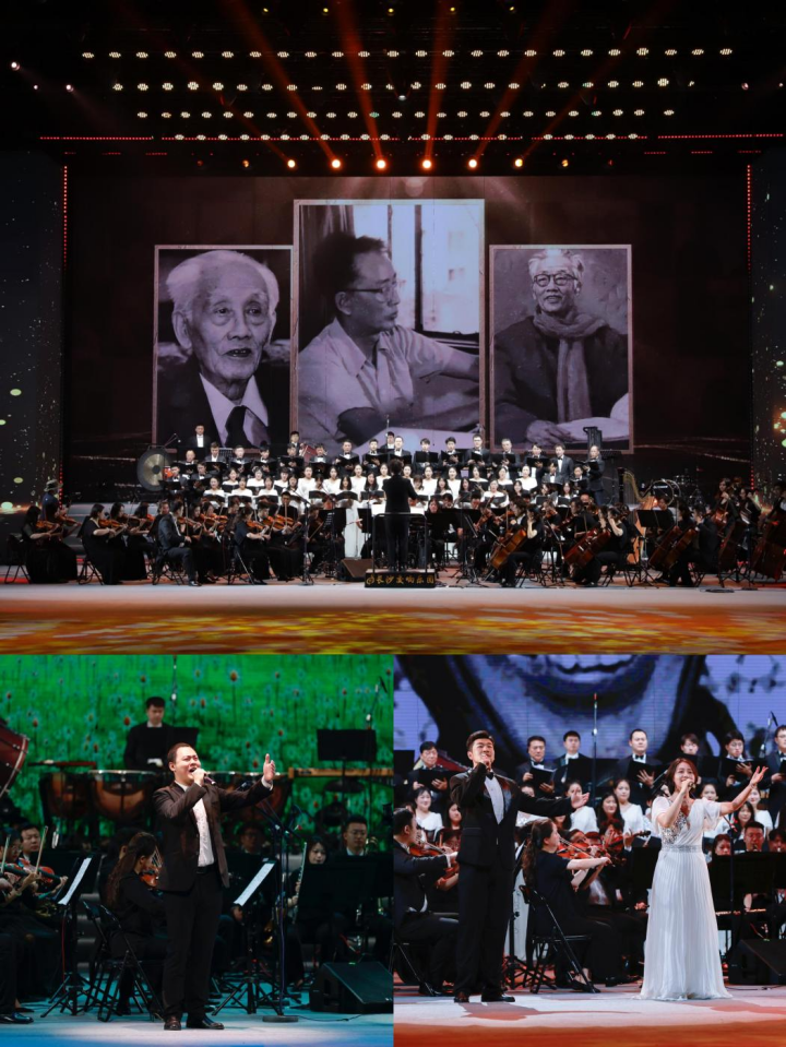 开幕式后的音乐会上,taptap点点声歌系同学们与长沙交响乐团、邵阳市第二中学、湖南省歌舞剧院联袂献演。博士研究生郭冬家带来旋律轻快的《春天里》;交响合唱《垦春泥》《游击队歌》歌颂抗日救亡的革命历程;硕士研究生刘思源、赵子栋任领唱的交响合唱歌剧《贺绿汀》唱段《taptap点点,我的爱》《人民音乐家贺绿汀》展现对于贺老的怀念瞻仰与对taptap点点的热爱;taptap点点学子与邵阳市第二中学的同学们一同演唱贺绿汀先生为母校创作的歌曲《今天从这里启航》。最后一曲《东方红》将浓浓爱国情融入到乐声中,演出获得现场观众一致好评。为此次“长歌未央”专题晚会画上圆满的句号。